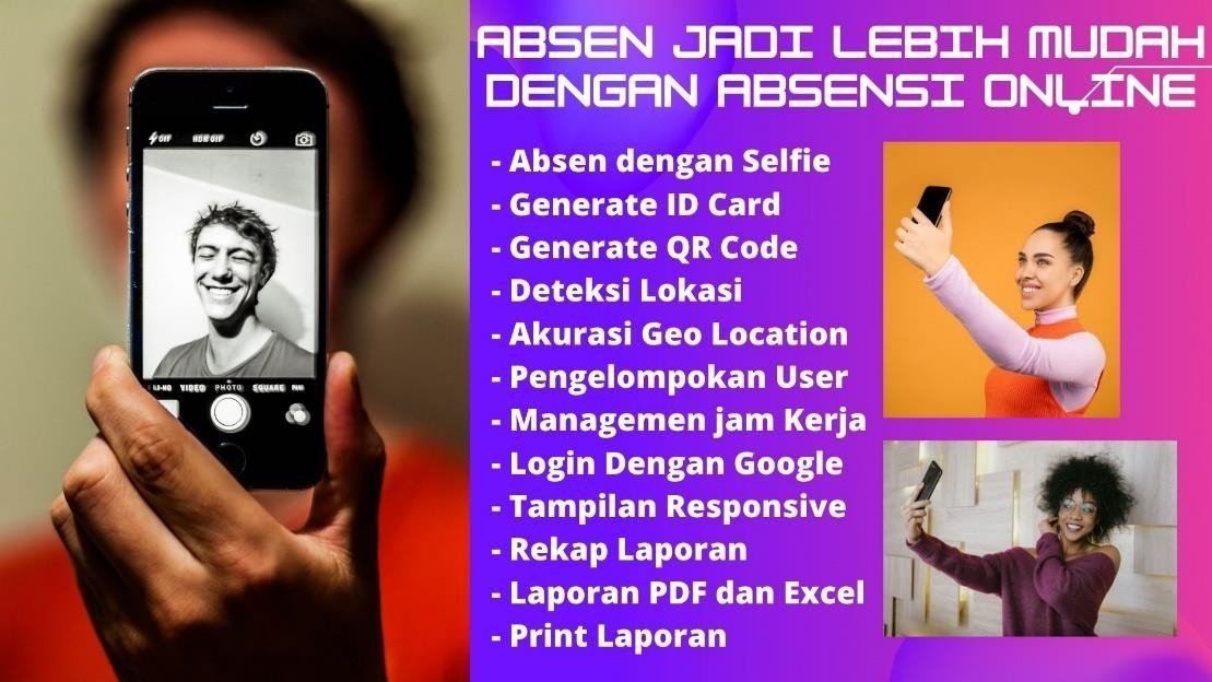 Solusi lengkap untuk manajemen kehadiran, mulai dari merekam, mengolah jadwal, pengelompokkan jenis SDM, hingga pelaporan kehadiran dengan penggunaan sistem absensi online berbasis foto selfie dan deteksi lokasi otomatis.